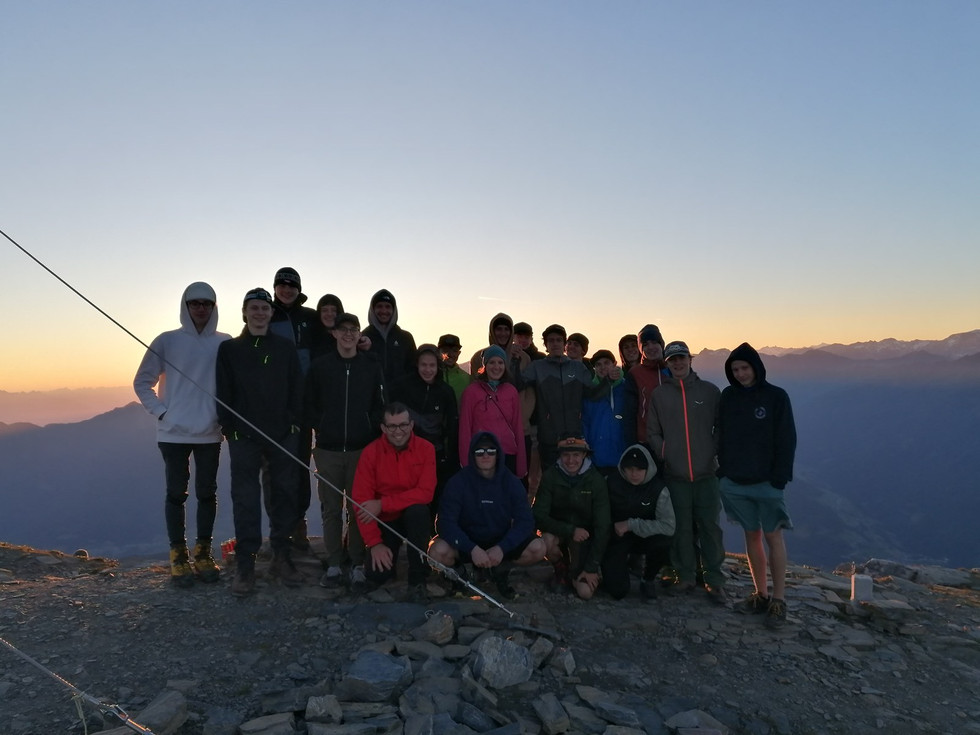 Gleich zwei Bergtouren wurden angeboten. Acht Erstklässler gingen mit P. Rinderer auf den Hohen Burgstall (2611m). Bei der Tour auf die Serles (2717m) waren sogar 19 Jugendliche dabei und erlebten einen traumhaften Sonnenaufgang. Das frühe Aufstehen und der Start um 2.15 Uhr hat sich auf jeden Fall gelohnt. Zwei Schüler trugen sogar ihre Instrumente auf den Gipfel und spielten dort mehrere Musikstücke. Begleitet wurde die Gruppe von Denise Pfeifer, Daniel Rumer und P. Peter Rinderer.
